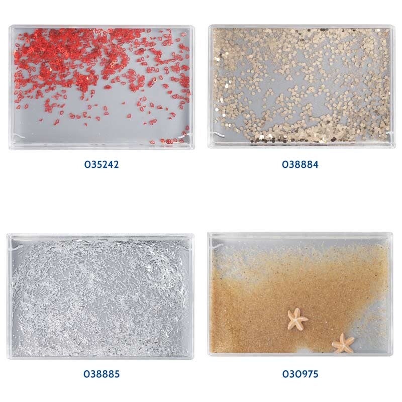 - Contient de l'eau et des copeaux de différentes formes et couleurs, selon le modèle choisi